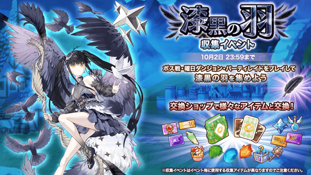 ゲーム内指定のコンテンツをプレイし「漆黒の羽」を集めて、 アイテムと交換しよう!