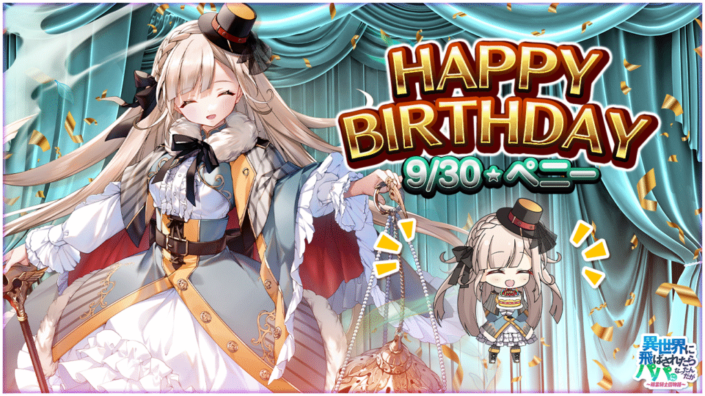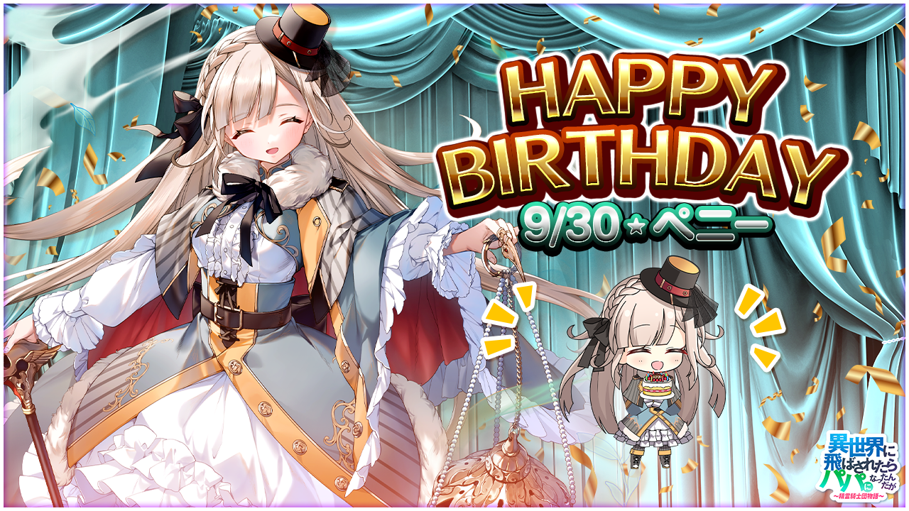 9月30日はペニーの誕生日!記念クーポン発行! イベント Twitter Facebook はてブ Pocket LINE コピー 2025.09.30 Happy Birth Day~【ペニー】 今日はペニーの誕生日♡ 病気を治すために研究を続けるペニー💉ペニーのおかげで今日も元気いっぱい☺ ペニーの誕生日を記念して、アイテムをプレゼント!ゲーム内のポストからお受け取りください♪ ★受取期間:10/2 23:59まで 公式X(旧Twitter)ではペニーのお祝いコメントをお待ちしております~! 今後とも『異世界のパパ』をよろしくお願いします。 アプリへ移動 今後とも『異世界のパパ』をよろしくお願いします。