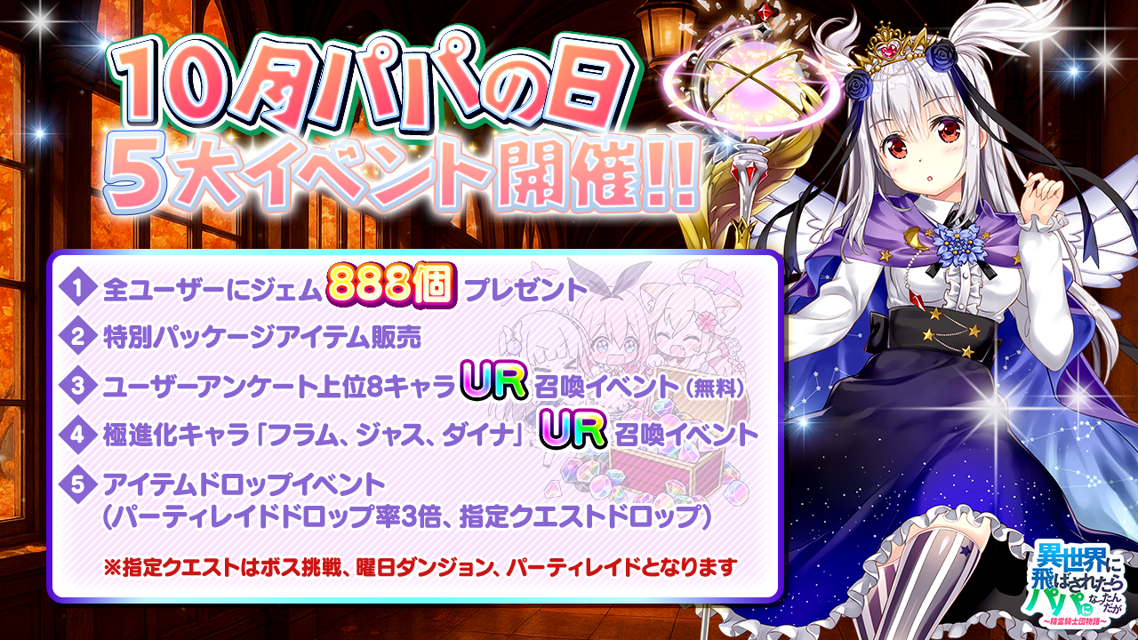 10/8のパパの日では、 オルレアからジェム888個プレゼント!