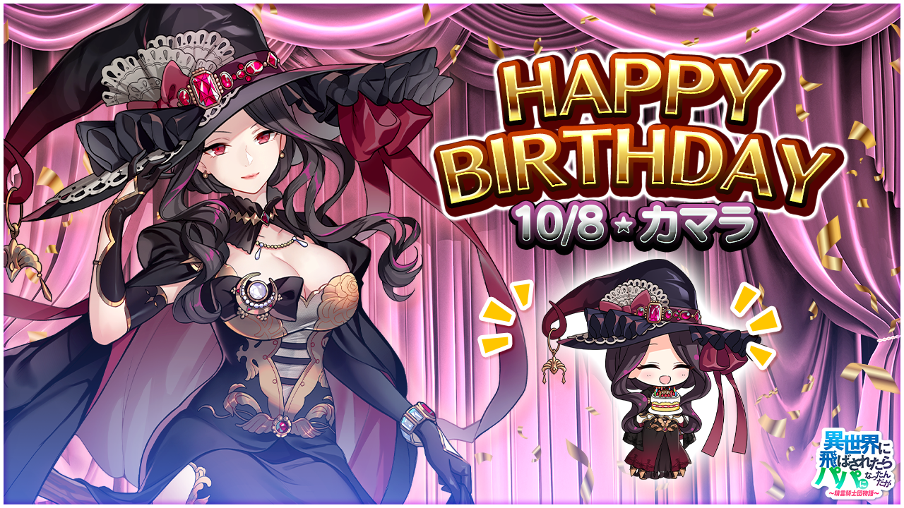 10月8日はカマラの誕生日!記念クーポン発行! イベント Twitter Facebook はてブ Pocket LINE コピー 2025.10.08 Happy Birth Day~【カマラ】 今日はカマラの誕生日♡ 彼女を前にすると全てを正直に話してしまう・・その摩訶不思議な愛の妙薬の正体とは!? カマラの誕生日を記念して、アイテムをプレゼント!ゲーム内のポストからお受け取りください♪ ★受取期間:10/10 23:59まで 公式X(旧Twitter)ではカマラのお祝いコメントをお待ちしております~! 今後とも『異世界のパパ』をよろしくお願いします。 アプリへ移動 今後とも『異世界のパパ』をよろしくお願いします。