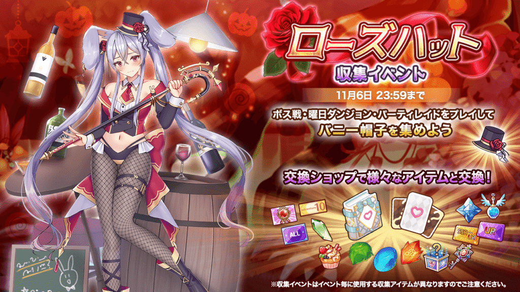 ゲーム内指定のコンテンツをプレイし「ローズハット」を集めて、 アイテムと交換しよう!