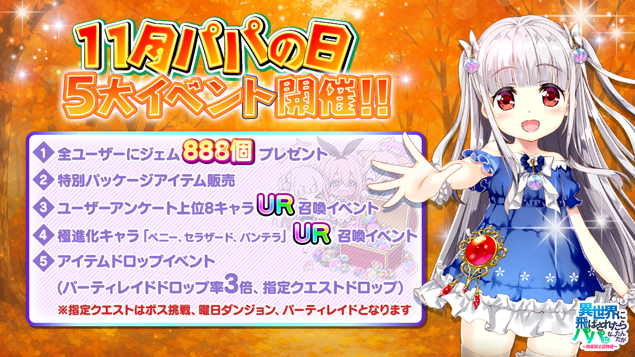 11/8のパパの日では、 オルレアからジェム888個プレゼント!