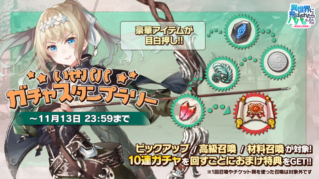 対象のガチャの10回召喚をジェムで行うごとに、スタンプをゲット!