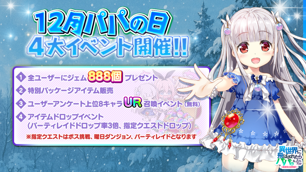 12/8のパパの日では、 オルレアからジェム888個プレゼント!