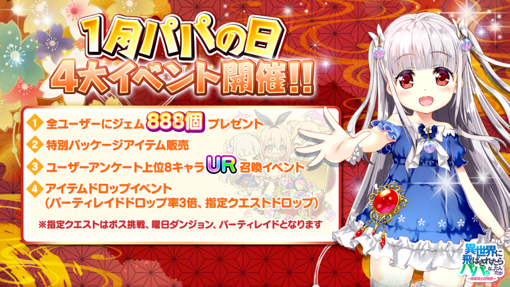1/8のパパの日では、 オルレアからジェム888個プレゼント!